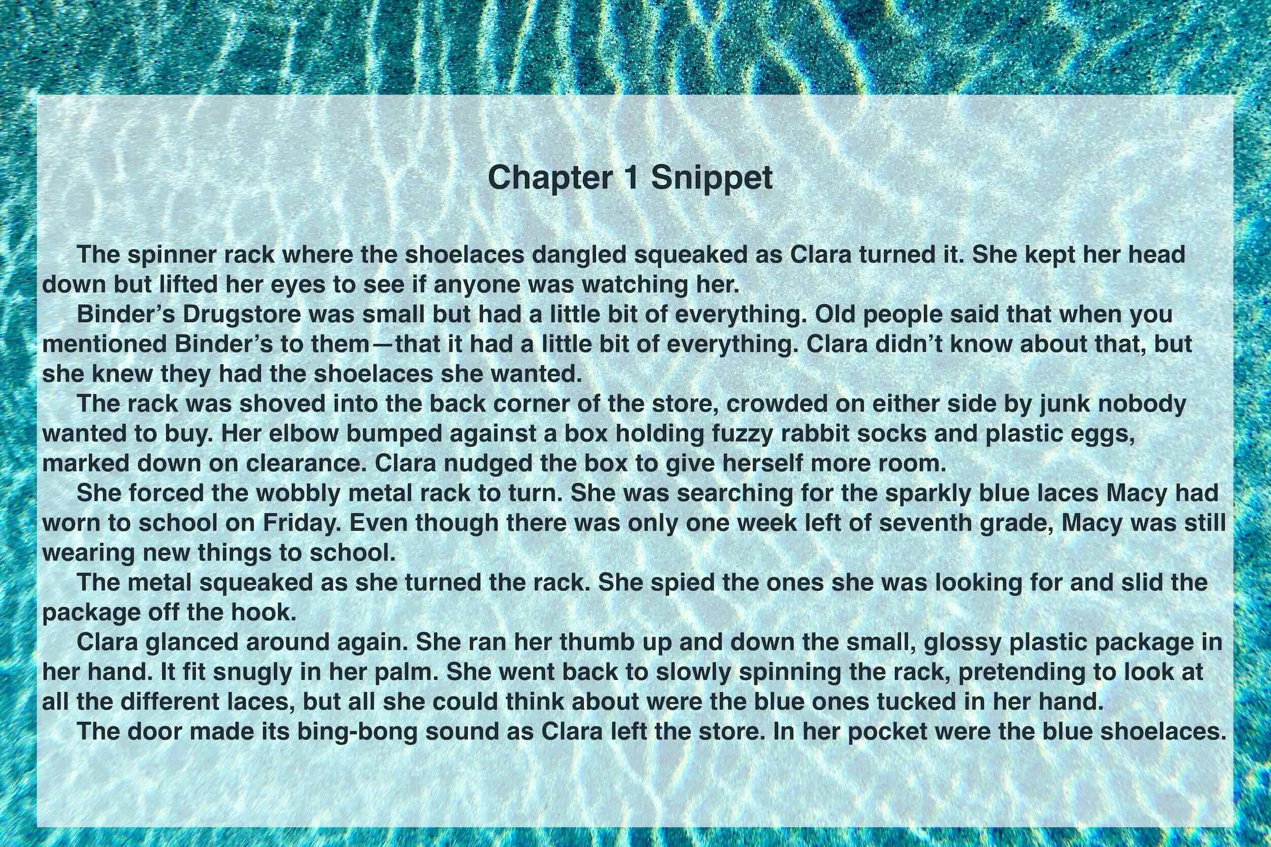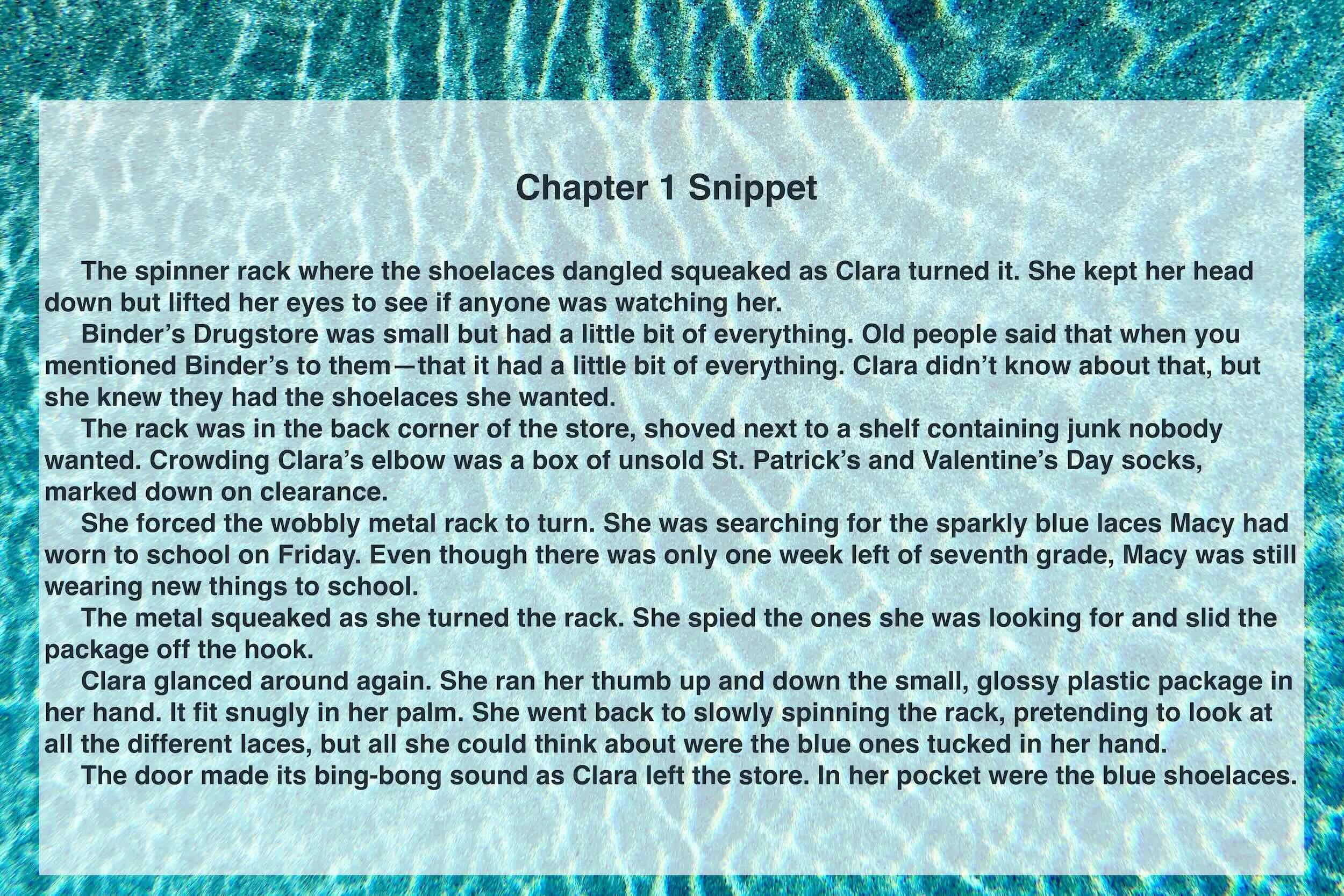 Whoever had scratched off the spaces had left the silver scratchings scattered across the glass. The lottery ticket was bright orange. It said “KA-POW!” in big block letters, like it was exploding. Clara thought of her mom’s white “SERENITY” sign and its block letters. She pictured a bright orange, four-foot sign that said “KA-POW!” hanging on Dani and Royal’s wall.